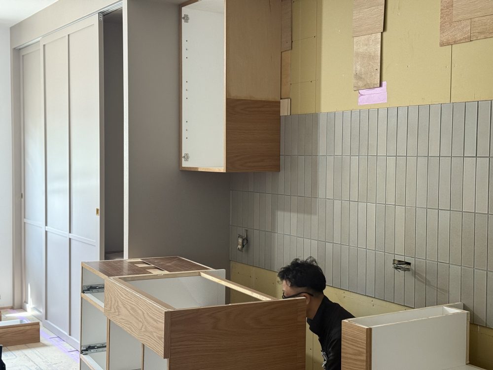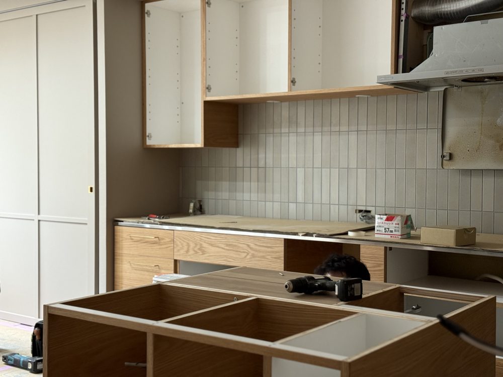 さて、豊田市で進めているキッチンリノベーションもいよいよ終盤。本日はオーダーメイドのキッチンが搬入され、設置が進んでいます。